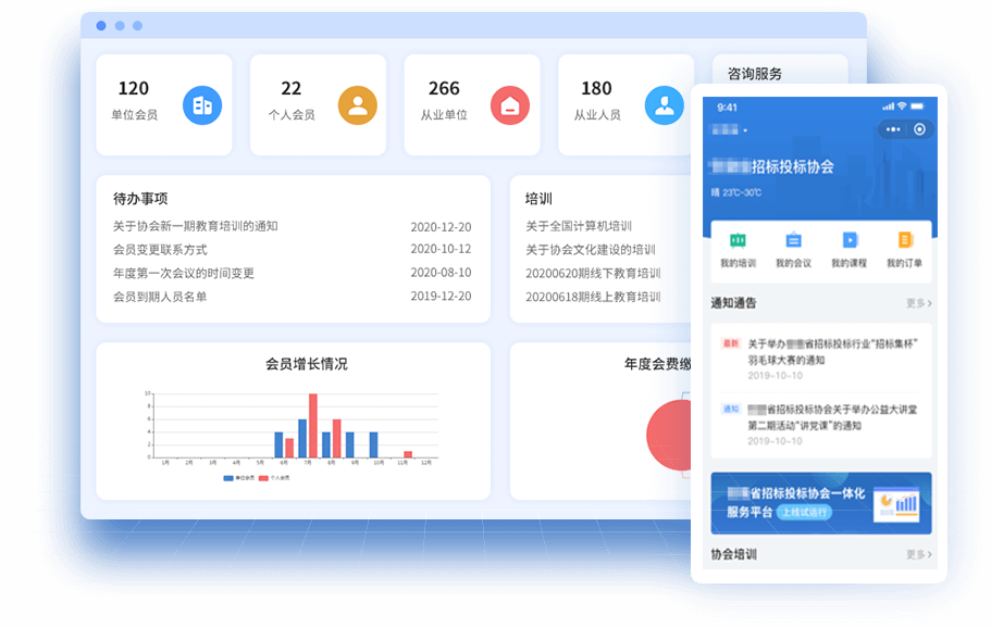 安訊協(xié)會一體化服務(wù)平臺,是按照“互聯(lián)網(wǎng)+社會組織”的理念,采用 “云計(jì)算、大數(shù)據(jù)”等先進(jìn)信息技術(shù),立足協(xié)會服務(wù)會員、規(guī)范市場秩序、開展行業(yè)自律等需求,建立的一體化管理與服務(wù)平臺,集成會員、從業(yè)人員、從業(yè)單位管理,通知、培訓(xùn)、會議、咨詢、資源、直播服務(wù),以及門戶網(wǎng)站、移動應(yīng)用,實(shí)現(xiàn)協(xié)會各業(yè)務(wù)數(shù)字化整合,全面提升各方獲得感,為協(xié)會服務(wù)國家、社會、行業(yè)提供全面的信息化支撐。